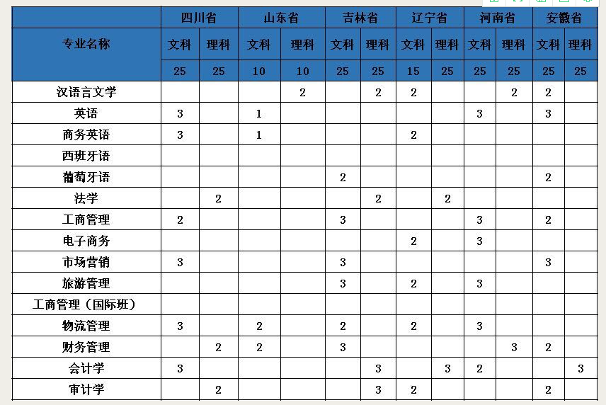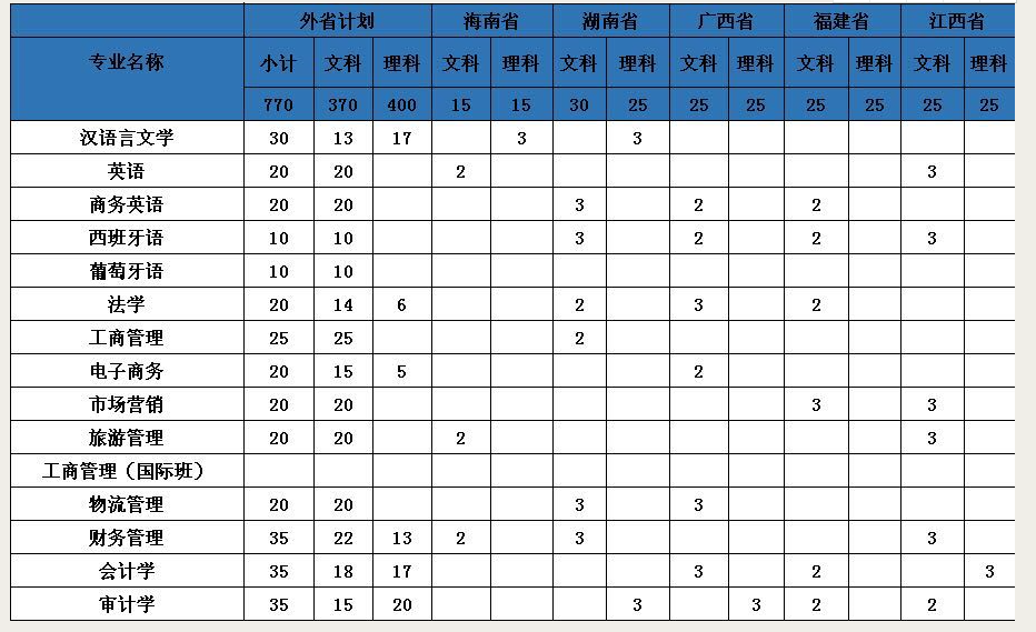 2019年全日制本科招生计划一览表