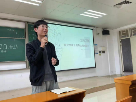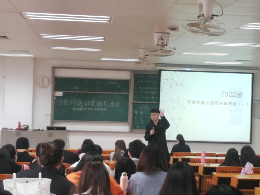 班会由2022届毕业生辅导员陈捷云老师主持,会议内容主要围绕2022届毕业生各阶段时间安排、就业(三方)协议的签订、校园招聘会的前期准备以及就业安全,提高毕业生的规划意识,就业意识,安全防范意识,做好职业规划,确定毕业目标。