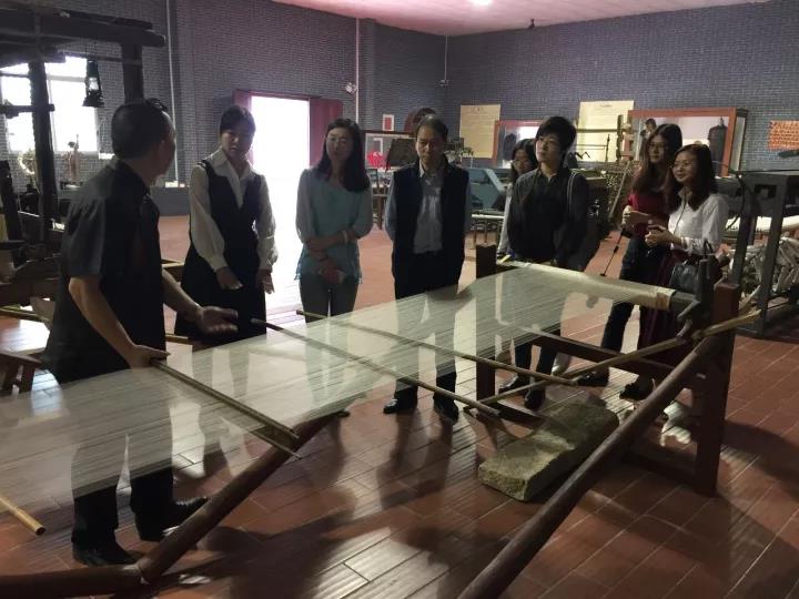 2017年11月11日,中山大学新华学院艺术与传媒学院院长蔡照波教授、艺术与传媒学院副院长周国屏教授、艺术与传媒学院学生工作部副主任罗万玲、艺术系办公室副主任潘倩莹和教师张长敏、赵苗、郑培心、陈捷云一行8人赴广东省佛山市西樵香云纱丝绸博物馆、西樵香云纱传承基地、佛山市南海NO.1实业有限公司参观考察,了解传统技艺与传承情况,以及企业一线的实际情况,听取企业家对服装设计教育的建议,探讨教学与企业的合作方向,为推动教学改革与发展掌握有关资讯。