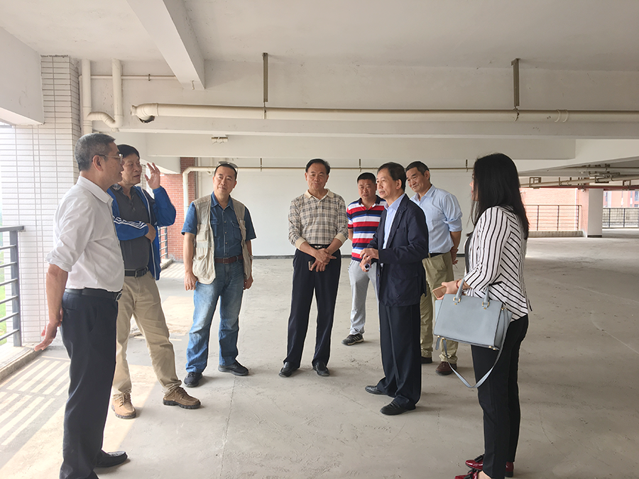 廖振亮副校长,许淑锐副校长与其它校领导在诚意园四楼进行实地考察