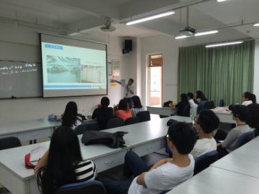 图一 吴经理向同学们展示公司文化