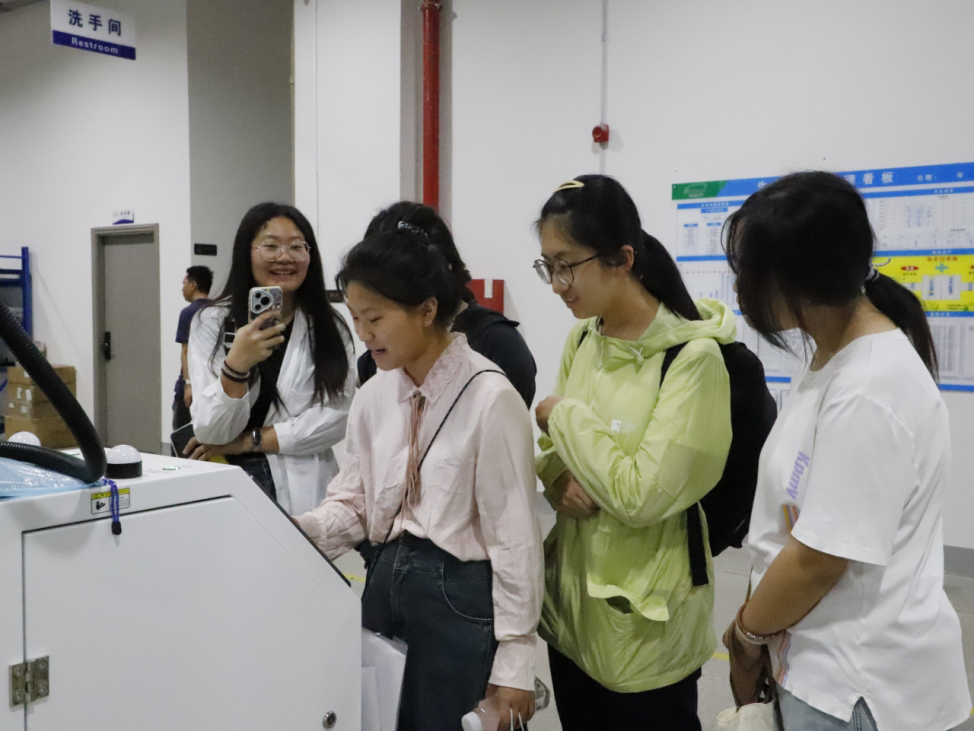 此次交流活动的顺利开展,得益于华盛控人事行政部主管熊辉前期的精心筹备与周到安排。活动伊始,在华盛控生产中心总监郭东旭的陪同下,师生们走进企业生产一线,对智能化生产流程进行了深入的了解。伴随着机械臂的高效运转与智能设备的有序作业,自动化生产线展现出高度集成与精密协同的工业之美,充分彰显了中国制造在智能化、数字化转型进程中的先进水平与发展实力。