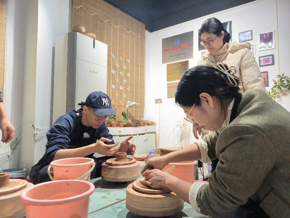 随后,张泽锋校友向老师们现场展示了手拉壶技艺。大家都被这项中国传统手工艺深深吸引,都对张泽锋校友精湛超高的技艺表示惊叹,并跃跃欲试,现场体验手拉壶工艺,感受这项非遗文化的魅力。