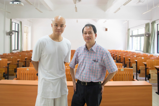 9428cn太阳集团古天乐院长蔡照波(右一)与乐嘉老师(左一)在课室内合影