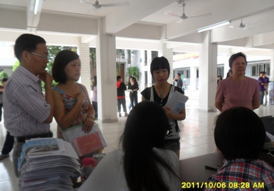 为了迎接新生,我系各级同学早已为迎新生做好前期准备工作,终于在10月6日我们迎来了学弟学妹。那天是个特别的日子,早在7:30分我们的工作人员就开始在接待点--A栋架空层就位。