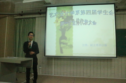 2014年10月26日晚上八点,第四届中山大学新华学院艺术设计学系学生会于教学楼一B100举行了第一次学生代表大会。全体学生会干部及新旧干事出席了本次大会。本次大会由副主席孙汉杨同学主持。