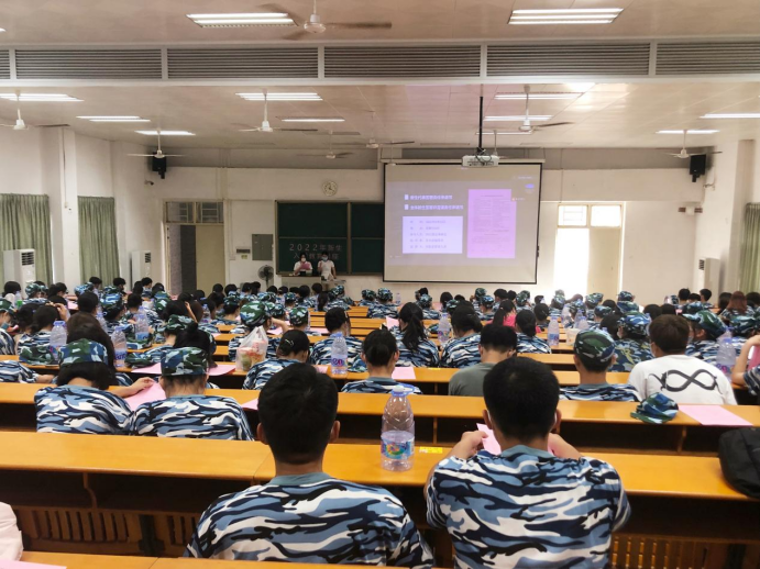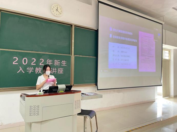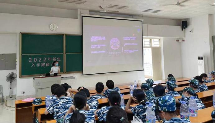 实验室管理员刘洁聪正在为我院2020级新生讲解实验室安全知识