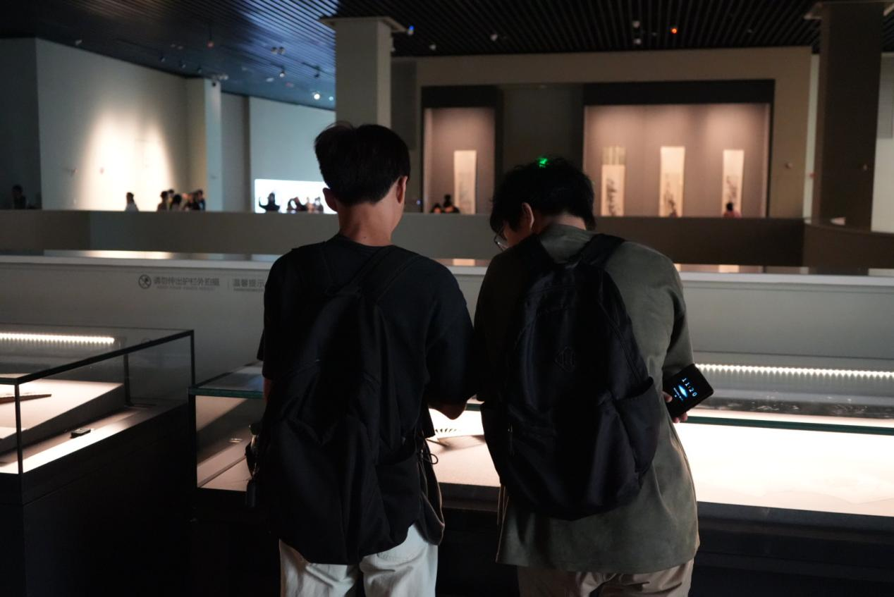 紧接着,学生们在老师的带领下来到广州美术馆主馆,观看了“万壑争流——广州艺术博物院藏中国古代画派艺术展”展览,展览汇聚了众多古代画派的经典之作,让学生们有机会近距离欣赏到中国古代艺术的瑰宝。他们驻足在画作前,认真观看,不时与老师低声探讨。
