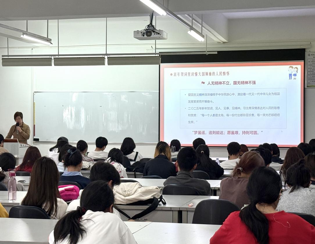 郑培心书记以 "四维坐标" 构建思政课堂,从中华优秀传统文化的创造性转化路径、国产 AI 大模型 DeepSeek 研发团队的青年创新力量、新年贺词中 "以国为家" 的人民情怀,以及 "中国核潜艇之父" 黄旭华院士的奉献精神四个维度,为学生打造了一场贯通历史与未来、连接理论与实践的思政教育。
