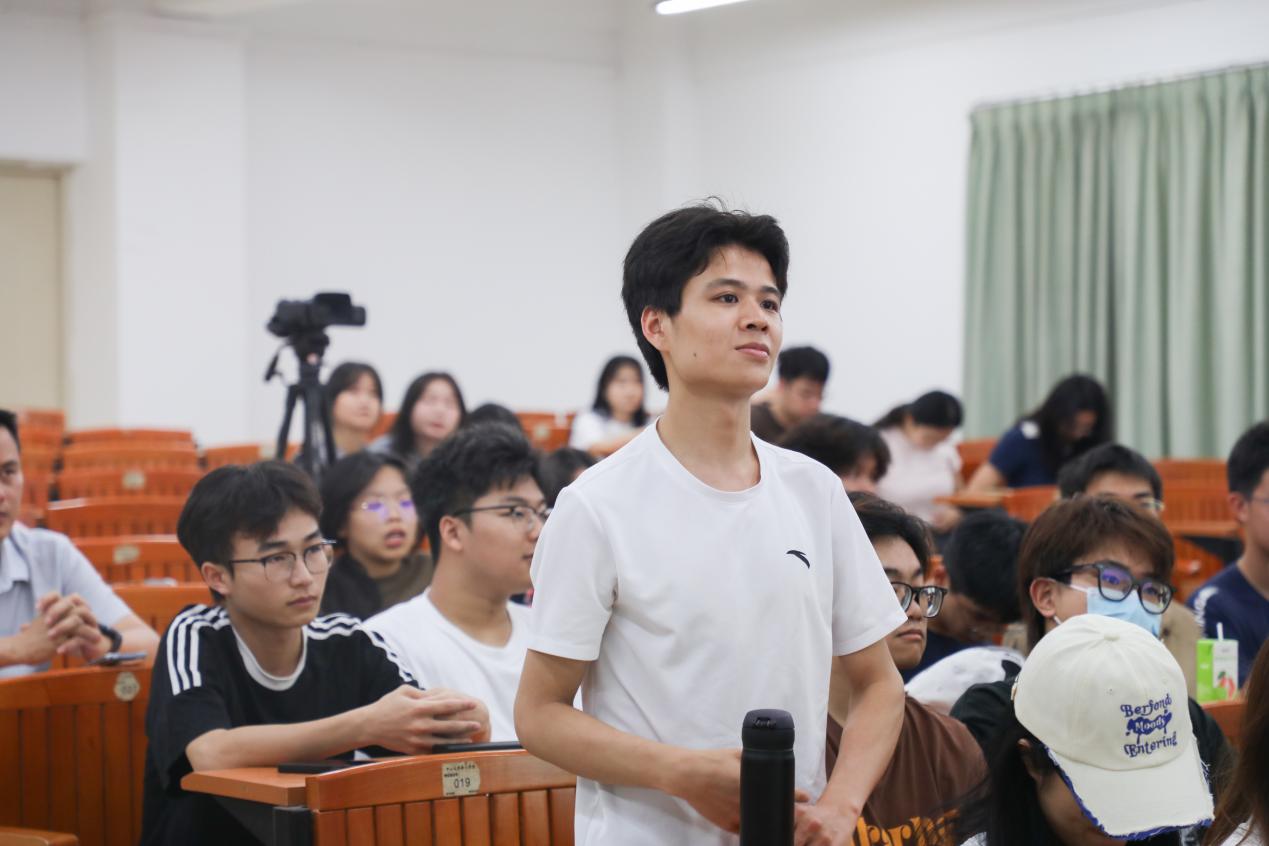讲座中,多名学生积极举手发言,踊跃与嘉宾提问互动,妙趣横生,现场气氛轻松愉快,幽默诙谐。