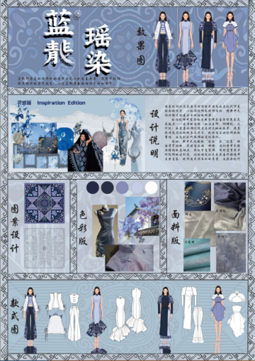 卢芯贤,林钰滢,刘温童,刘泳欣 《蓝白绘冬,东北韵悠——东北蓝白印花布图样设计》节选 一等奖