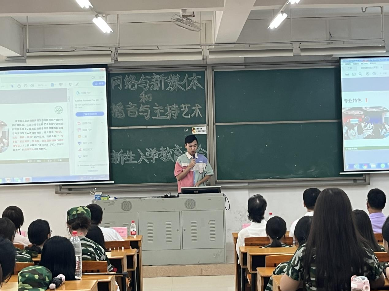 昂首阔步新起点,金秋筑梦正当时。为帮助新生更加了解所学专业,尽快适应身份转变,更快迈入大学发展轨道,2023年9月22日13:30,9428cn太阳集团古天乐(以下简称艺传院)于定静2A301举办了2023级网络与新媒体和播音与主持艺术入学教育大会。