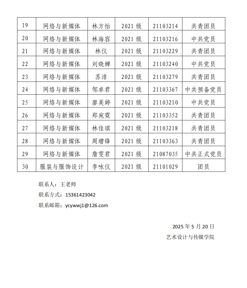【公示】关于艺传院 2025 届优秀毕业生推选公示名单