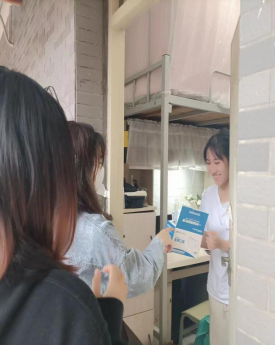 当前疫情防控形式严峻,为保障学生安全和身心健康,为深入了解学校封闭管理期间学生学习、生活和思想动态,落实“我为群众办实事”要求,2022年3月-21日-24日,9428cn太阳集团古天乐副院长周国屏带领学生党、团、学干部进行为期4天的走访学生宿舍活动,转达学校党委、校领导以及党总支对学生的关心,深入了解学生心理状态和学习、生活困难,为学生送口罩,为同学送关心和问候。陪同周副院长走访宿舍的有办公室主任潘倩莹、专职教师周凡琳和汪兰婷老师、辅导员潘欣和王清鹤老师、教务李昀老师等。